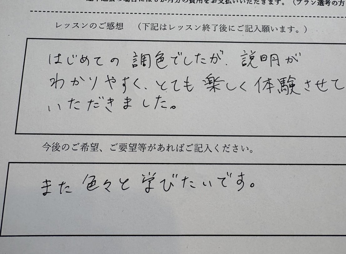とても楽しく体験させていただきました。