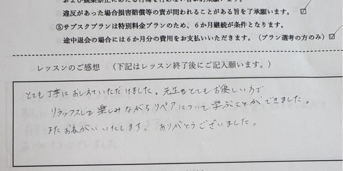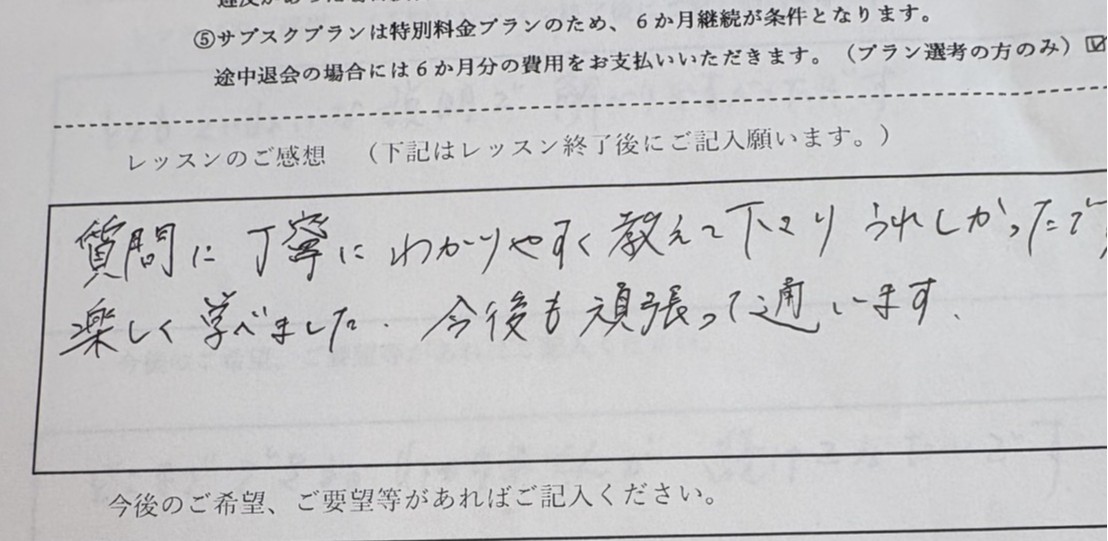 楽しく学べました。今後も頑張って通います。
